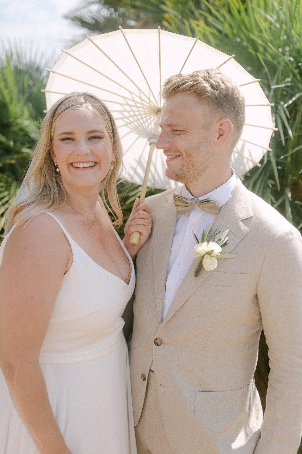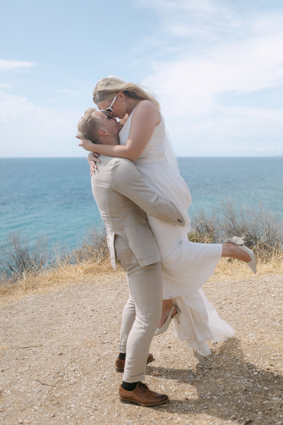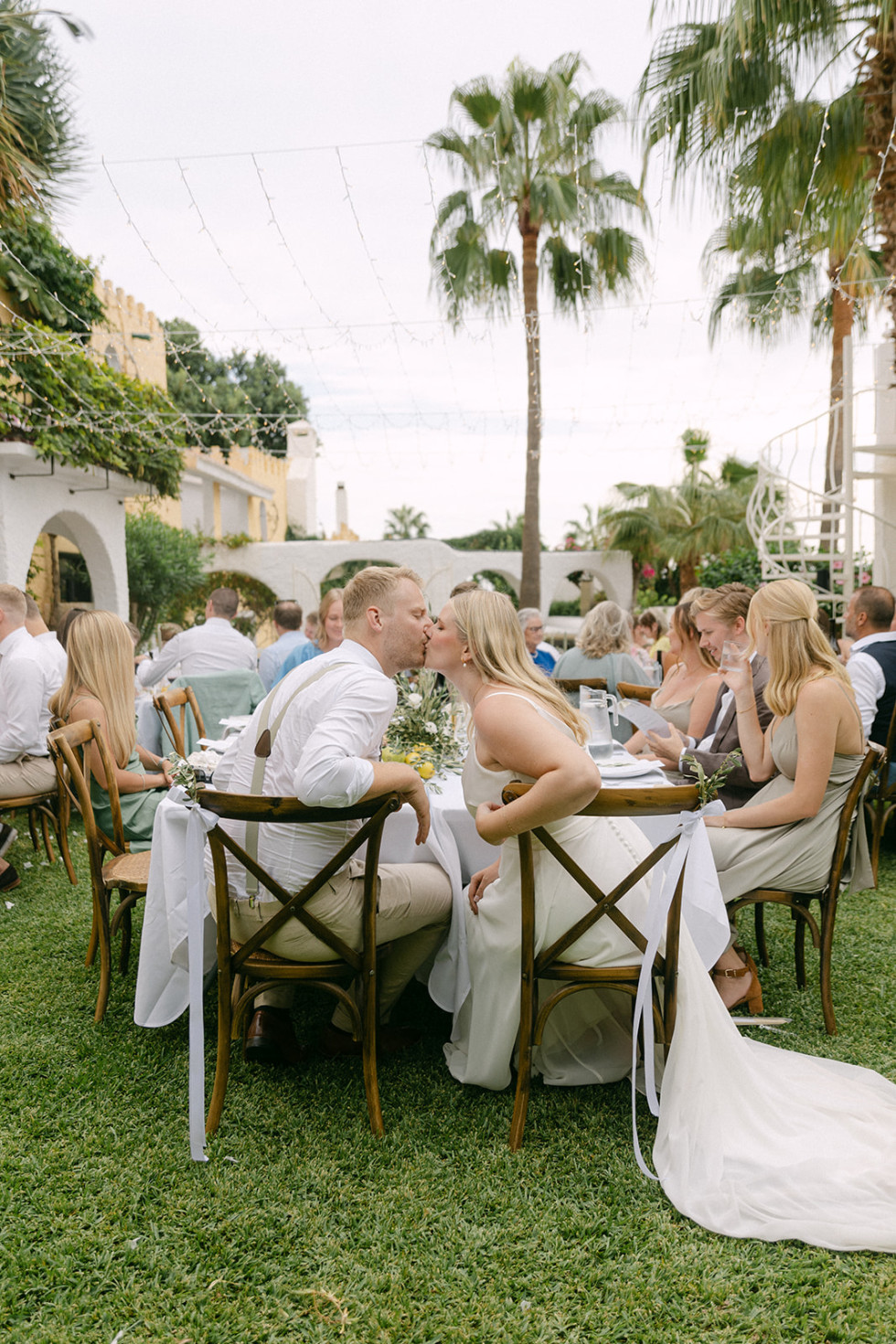 Eftersom Lovisa jobbar med design och formgivning har hon alltid drömt om att få göra sitt eget bröllop, allt från inbjudningskort och trycksaker till dekorationer och blommor. Det var såklart superkul att få göra allt på riktigt, men svårt när det är så mycket som är fint! Lovisa hade en tydlig vision om hur bröllopet skulle se ut visuellt! Vi ville hålla bröllopet relativt litet eftersom vi befann oss utomlands, vi hade fokus på fest med vänner och närmsta familjen. Vi ville inte ha ett ”barfota på stranden”- bröllop, så de var viktigt för oss att få till rätt känsla under bröllopet för att de skulle kännas som vi.