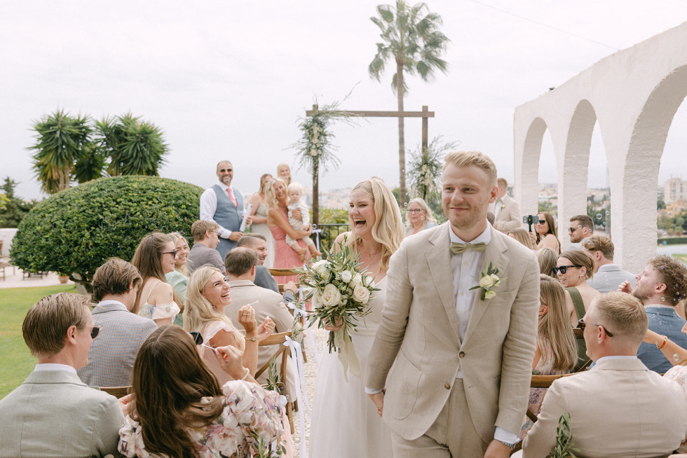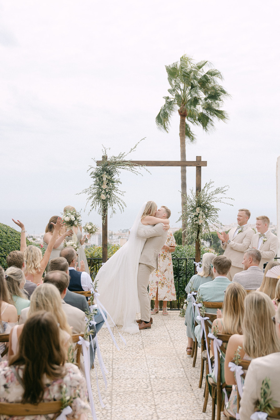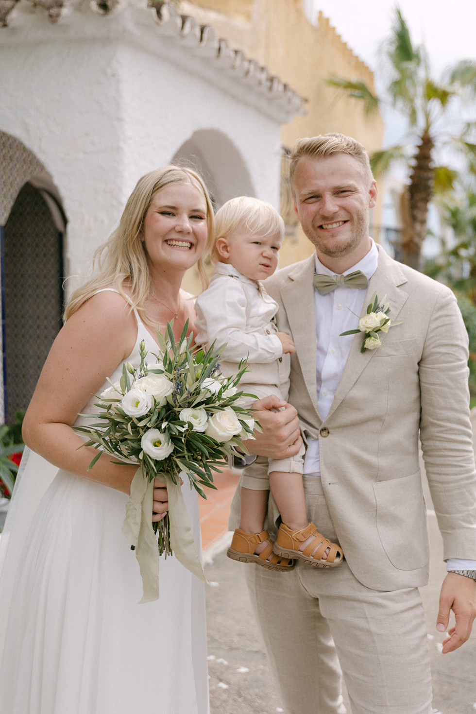 Vigseln ägde rum kl. 15.00 på terrassen på framsidan av huset med utsikt över Nerja och havet. Det blev en otroligt vacker och intim stund. Under vigseln spelade Klara, the violinista, Jonathan gick in till Concerning Hobbits tillsammans med hans mamma och Ralph och Lovisa till Yellow av Coldplay tillsammans med sin pappa, båda spelandes på fiol. Även Lovisas mamma och Jonathans pappa sjöng och spelade tillsammans, vilket betydde mycket för oss. Vår son Ralph var ringbärare och lämnade något motvilligt ifrån sig asken med vigselringen i tid.