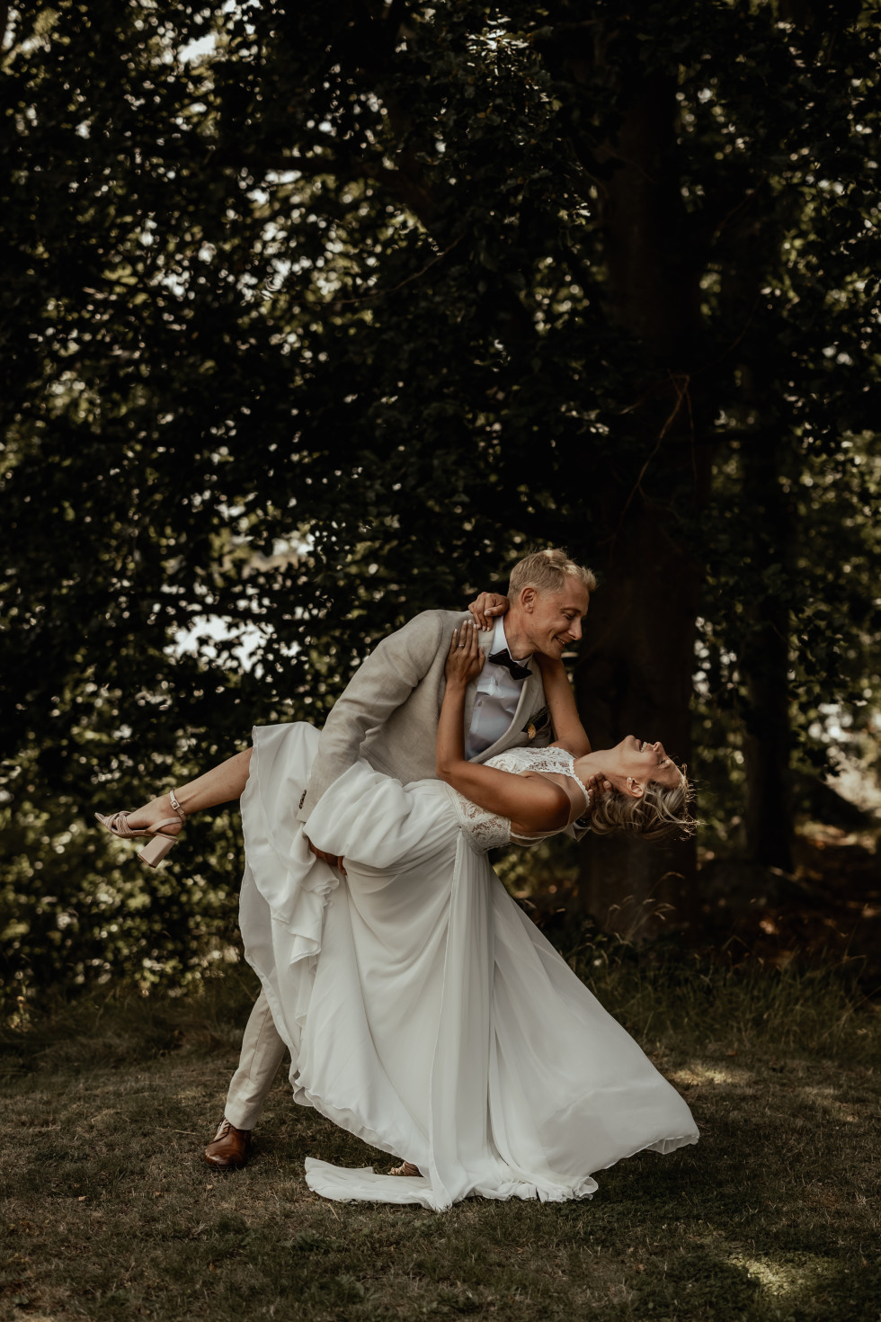 Middagen var fylld med underbara tal, skratt och glädjetårar. Efter desserten tog festen vid med dans, och Daniels bestman, Jens, spelade vår första danslåt live: ”I Knew I Loved You” av Savage Garden. Det var magiskt att dansa tillsammans med alla våra nära och kära runtomkring.