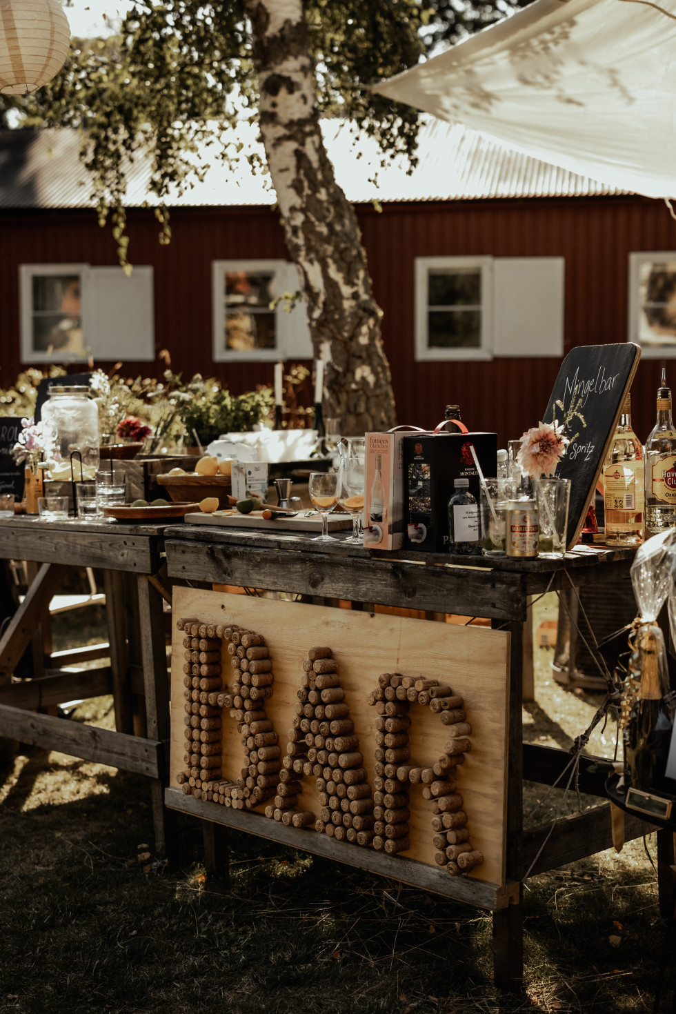 Vi ordnade det mesta själva, förutom grillbuffén, tältet och fotograferingen. Familj och vänner hjälpte till, och min tärna Hanna bakade extra kakor när vi hade fullt upp på bröllopsplatsen. Vi är nog lite tidsoptimister, men vi hade så många fina människor runt oss som hjälpte till att få allt klart i tid.