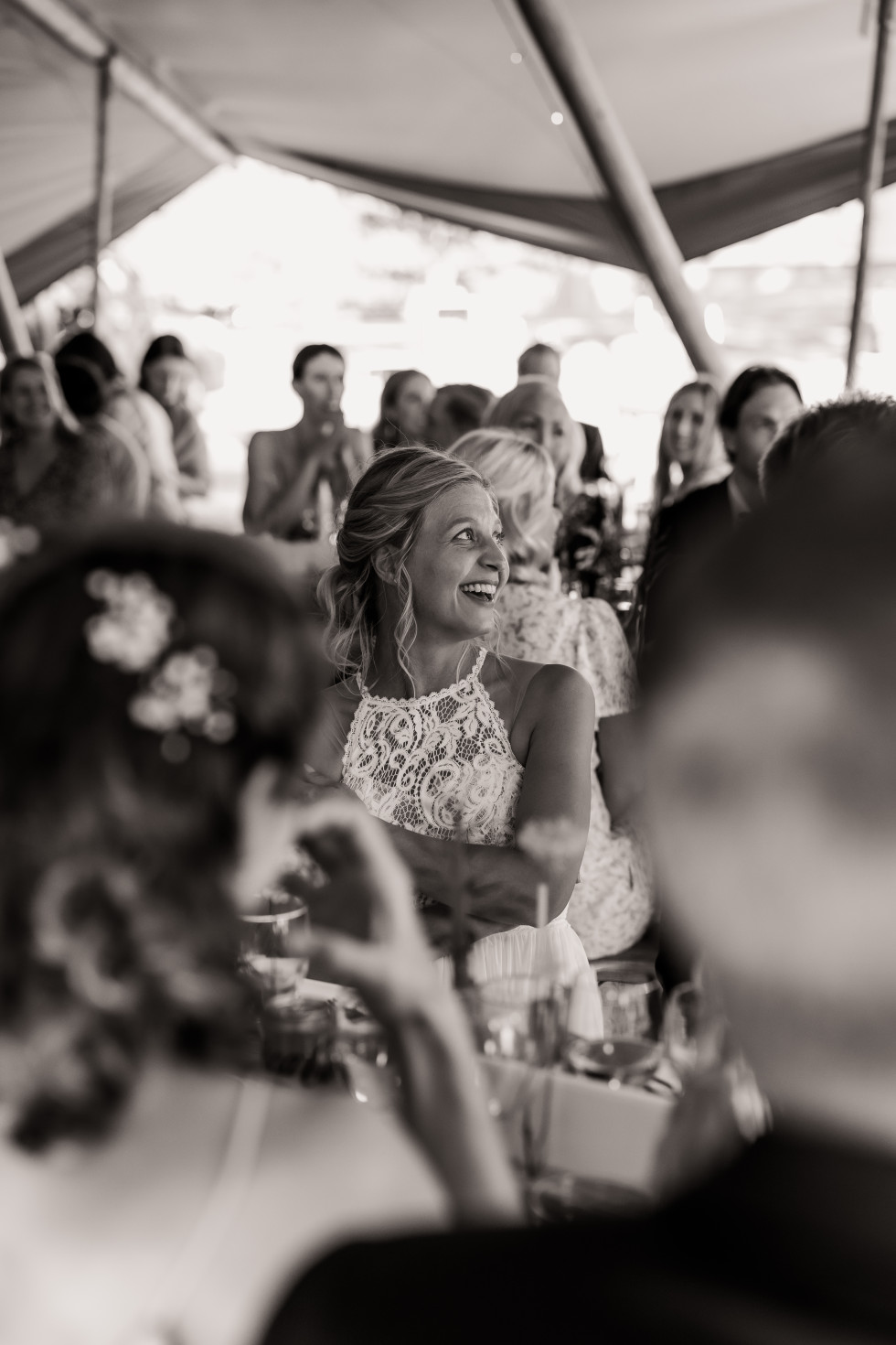 Mitt bästa minne från bröllopet var kvällen före, när vi satt mitt i tältet. Min syster Emmi gav mig manikyr medan Daniel och jag försökte lösa bordsplaceringen, och våra långväga gäster började dyka upp. Allt kändes så nära och bubbligt!