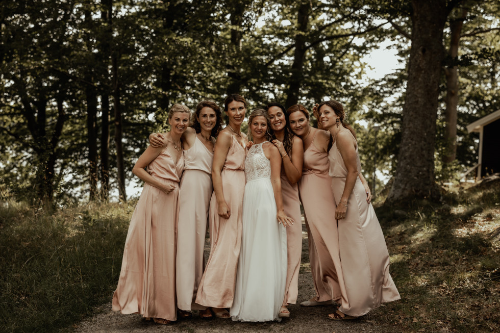 Vi hade alltid pratat om att gifta oss, det kändes självklart från dag ett. Trots små drömmar och planer har vi fått vänta, på grund av renoveringar och nytillskott i familjen. En av mina tärnor sa något väldigt fint: ”Det är vackrare att gifta sig efter många tuffa år, med byggstök och småbarnsliv. När man väl gifter sig då, betyder det att kärleken är hållbar, och trots allt vill man fortfarande fira den med sina nära och kära.” Det blev väldigt speciellt för oss att även våra yngre barn kunde vara med och dela dagen och förväntningarna. 💕