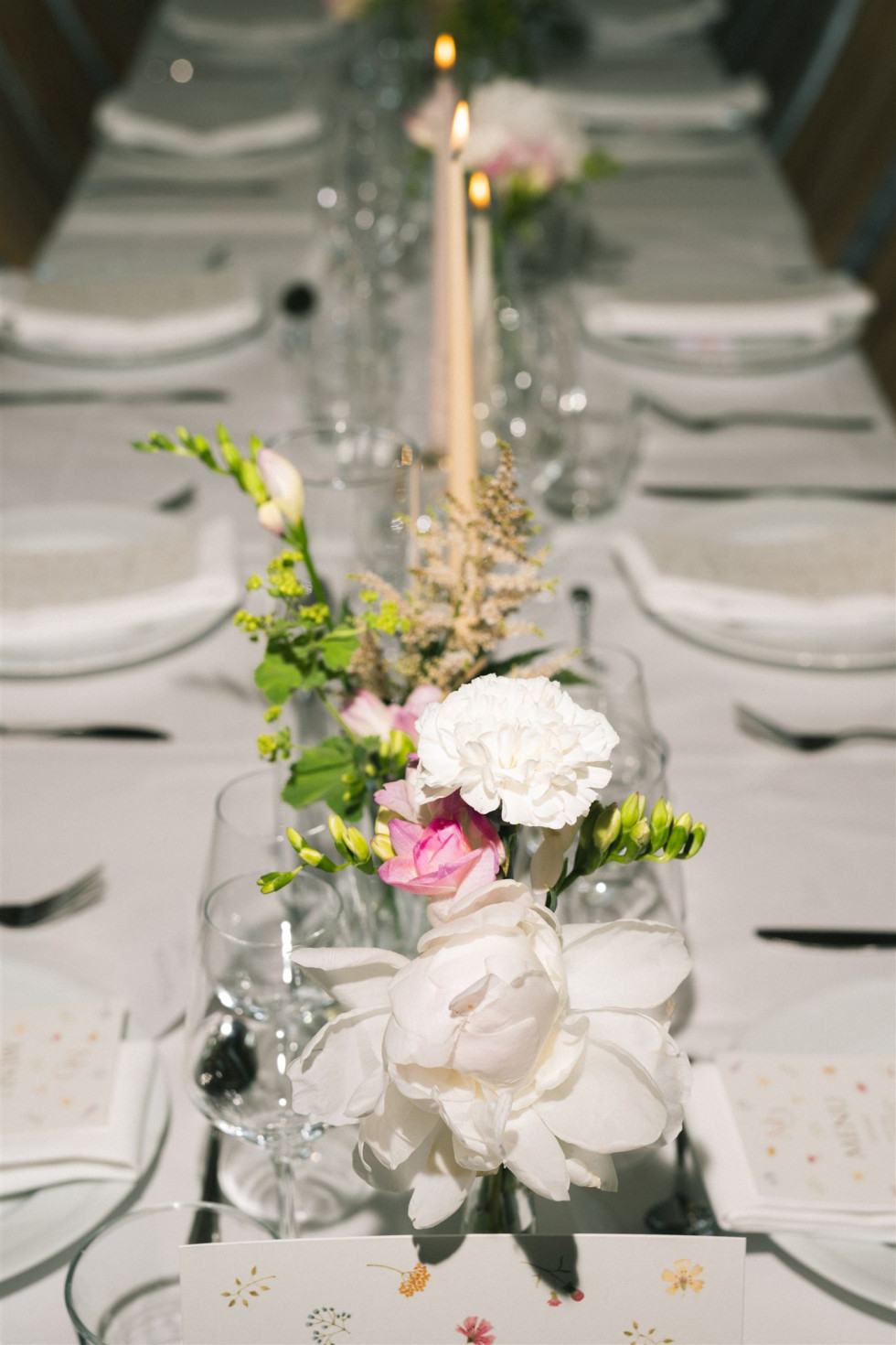 Vackra Bröllop i Stockholm skapade Oscar och Meira bröllopsblommor. De designade ett romantisk och elegant blomsterarrangemang som förhöjde hela atmosfären med noggrant utvalda blommor.