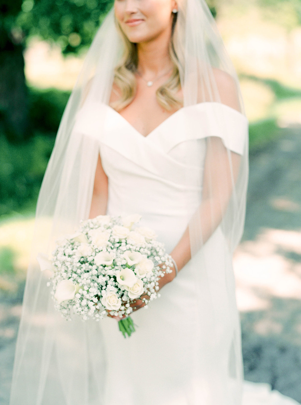 På bröllopsdagen försvann faktiskt vattnet på hela slottets anläggning, vilket gjorde att gästerna inte kunde varken duscha, gå på toa eller dricka vatten (extra jobbigt för de som hade hållt igång på fredagens poolparty). Timmarna gick och 20 minuter innan make up artisten anlände fick Evelina kasta sig in i en bil och bli körd hem till en av slottspersonalens hästgård (evigt tack till den personen!). Där hade hon cirka 5 minuter på sig och prioriterade en snabbdusch och borsta tänderna. Tvätta håret fick hon skippa. Vi hade haft många ”worst case senarios” dialoger innan bröllopet men denna hade vi inte räknat med. Nu i efterhand är det en kul story! Vi har fått höra att några åkte till lokala grillen och tog en raggardusch, några gick flera kilometer för att skölja av sig i sjön och andra funderade på att schampoonera sig i poolen. Som tur var kom vattnet tillbaka innan vigseln. 😂