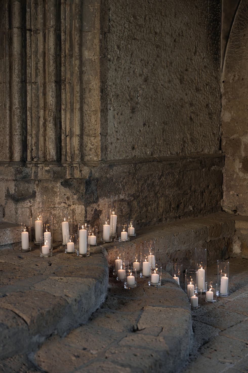 Transparenta stolar, Drapering och Ljus i cylindrar