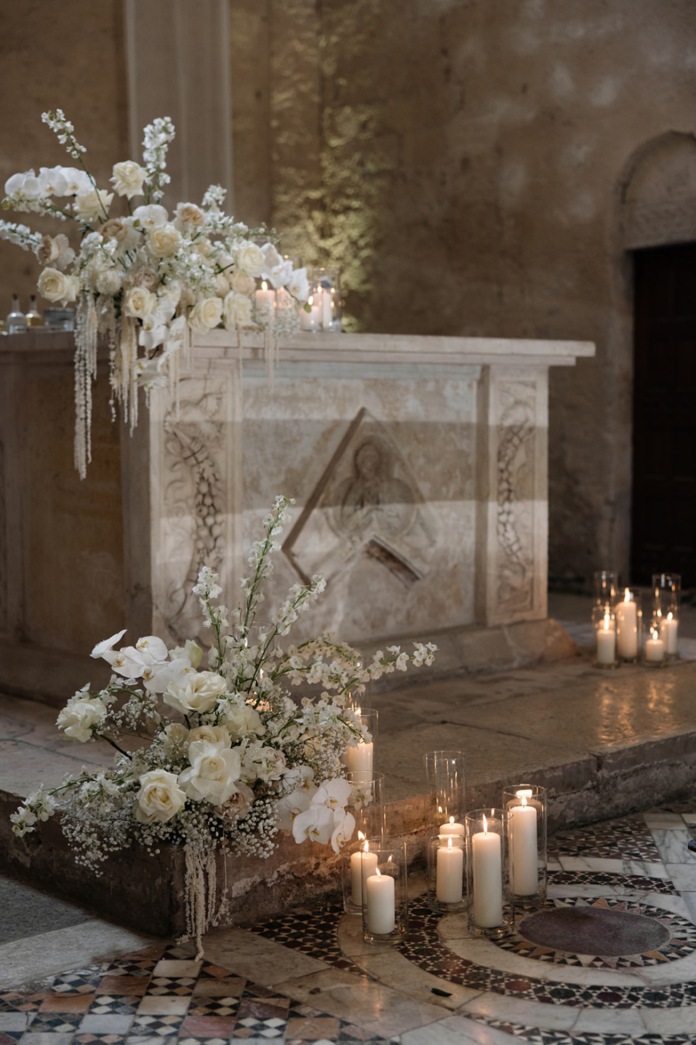 Ljus var en central del av dekoren, där kluster av cylinderformade ljus strategiskt placerades för att sprida ett mjukt, glödande sken. Denna belysningseffekt bidrog till att skapa en magisk atmosfär, där varje hörn av rummet fick en subtil och inbjudande lyster.
