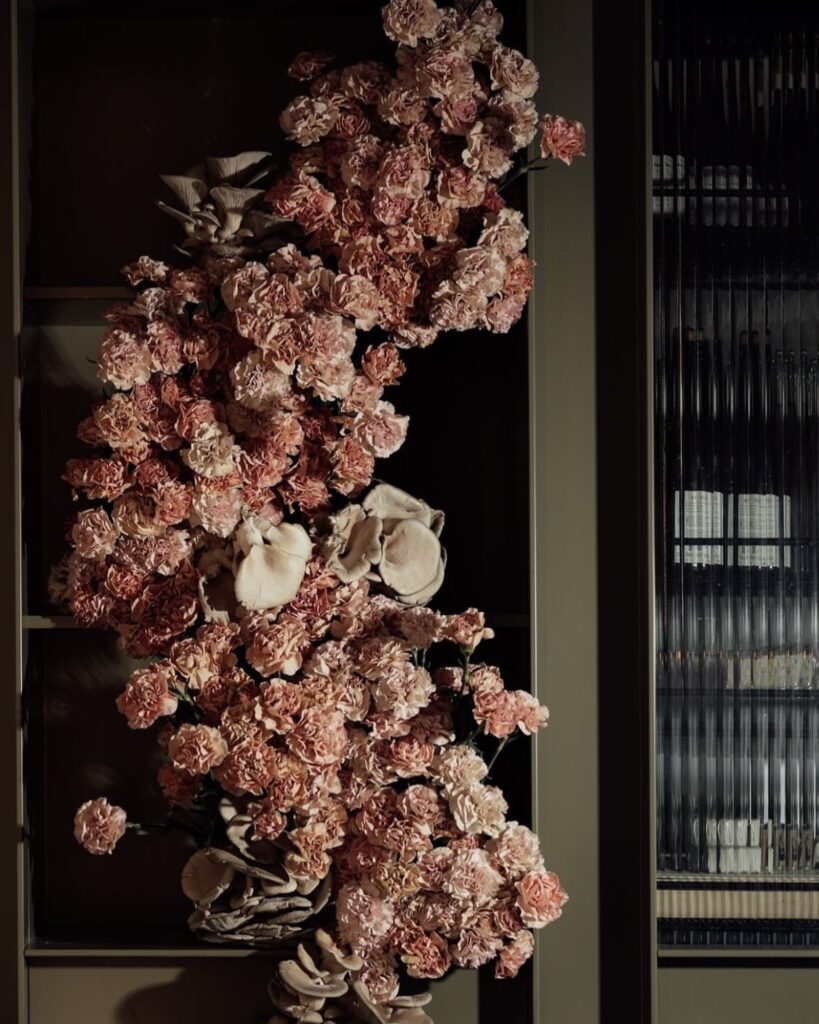 Blommor behöver inte bara stå i små buketter på varje bord. I moderna bröllop får de ofta ta mer plats. En större installation, ett arrangemang som faller över ett bord eller en skulptural bukett kan bli en naturlig blickpunkt i rummet. Det skapar liv och ger miljön mer karaktär. Välj gärna blommor i samma ton som resten av inredningen så att allt känns sammanhållet.