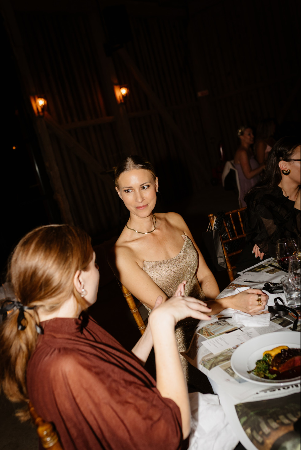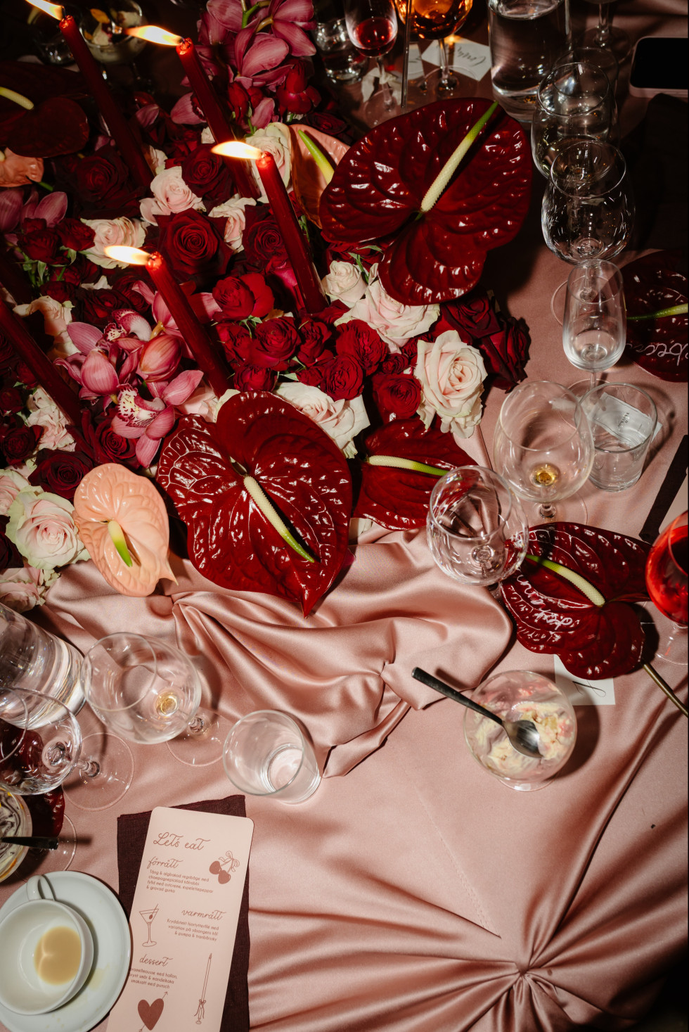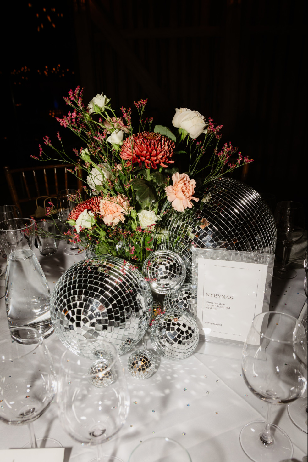 Bordsmiljöerna blev små universum i sig, skapade av några av branschens mest kreativa namn. Rebecca på Berry Weddings, Alina på Göteborgsbröllop, teamet på Gäddeholms Trädgård, MJ Blomsterdesign , Sara Palm från Your Event by SP, Anna på Nybynäs Gård samt Karolina Wahlman & Bröllopskollegor. De handskrivna placeringskorten från Karin Creative gav varje setting den där sista, genomtänkta touchen. Tillsammans formade alla dessa kreatörer inte bara ett event, utan en helhetsupplevelse. En atmosfär, en visuell värld och ett statement.