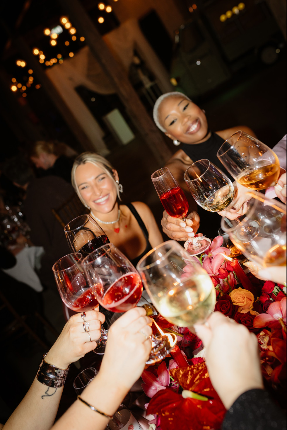 Mingelnivån hölls hög redan från start med signaturrätter från Roccos Matstudio, följt av en trerättersmeny komponerad av The Nutmeg House, en smakresa som höll samma nivå som kvällens estetik. Till varje rätt serverades noggrant utvalda drycker och som en exklusiv överraskning lanserades Alnöls nya blåbärsvin just denna kväll. För de alkoholfria alternativen som alltmer markerar sin självklarhet på moderna bröllop, stod Johlini med sin Sparkling Tea och Lapland Berries med sin mousserande hallondryck. Rolling Events Prosecco-vagn var en chic crowd-pleaser som såg till att ingen behövde leta efter påfyllning.