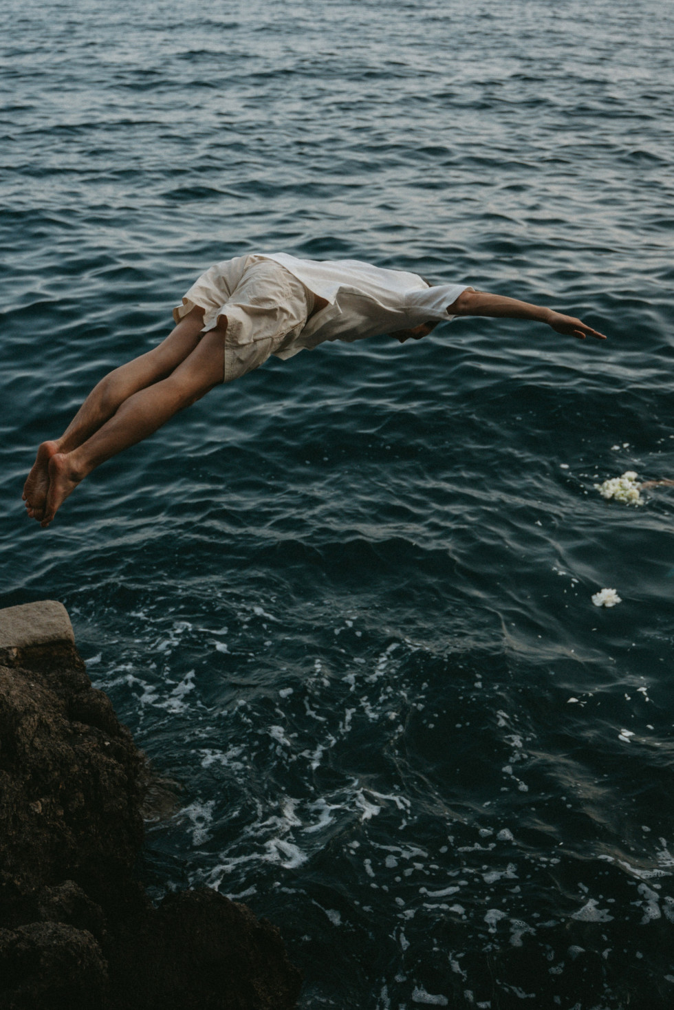 Bilderna säger allt. Det spontana, det modiga, det fria. Skratten ekade och solen kastade sitt sista gyllene sken över det nygifta paret. Det var inte bara ett vackert avslut, det var en symbol för allt de byggt tillsammans. Ett bokstavligt dyk in i äktenskapet!