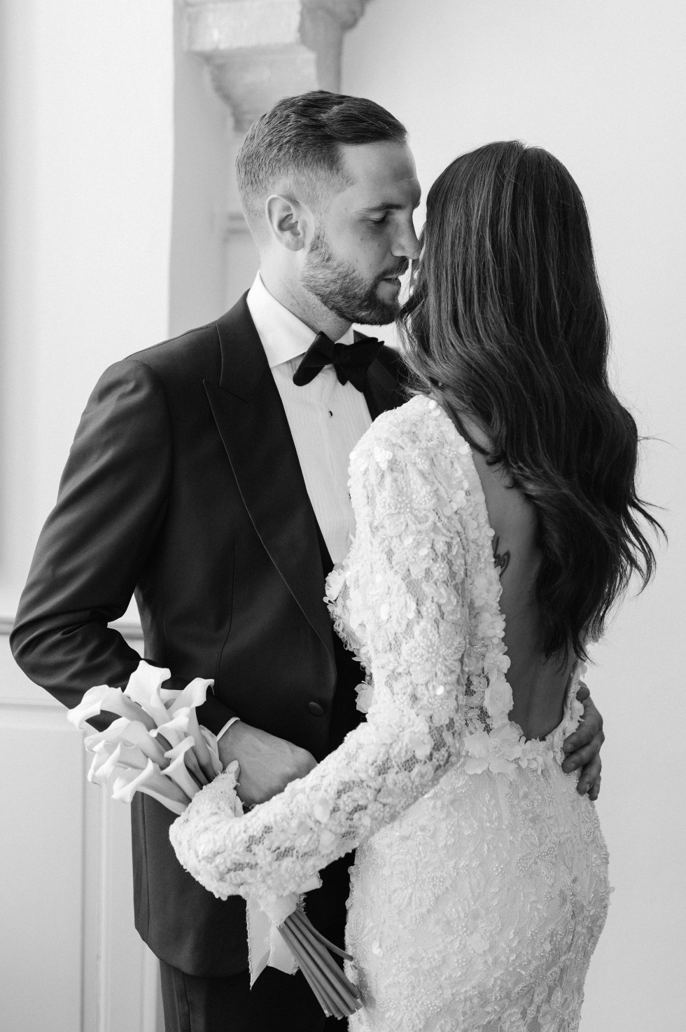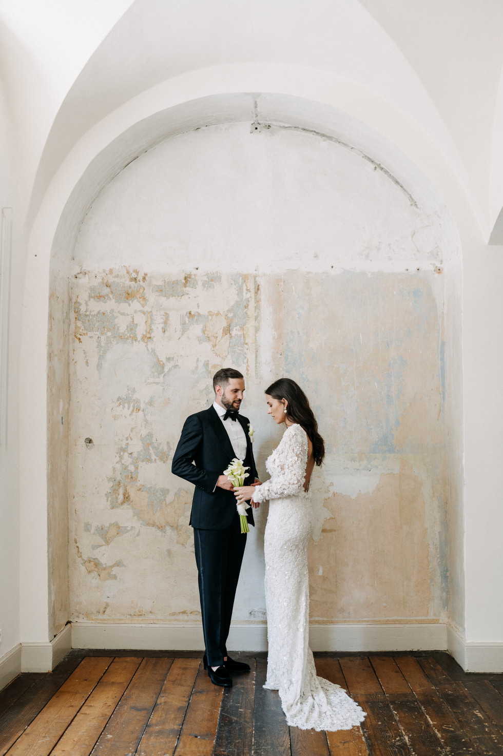 Med en kuliss som hämtad ur ett romantiskt mästerverk – där mjukt patinerade väggar, subtila muralmålningar och klassisk europeisk arkitektur satte tonen – skapade Seda och Adrian ett bröllop som andades både intimitet och utsökt stil. Fotografen Fanni Hermán fångade dagen med en sällsynt fingertoppskänsla för både de stora ögonblicken och de små, tysta stunderna. Det blev en visuell berättelse om kärlek, där varje bild bär på ett ögonblick av närvaro och intimitet.