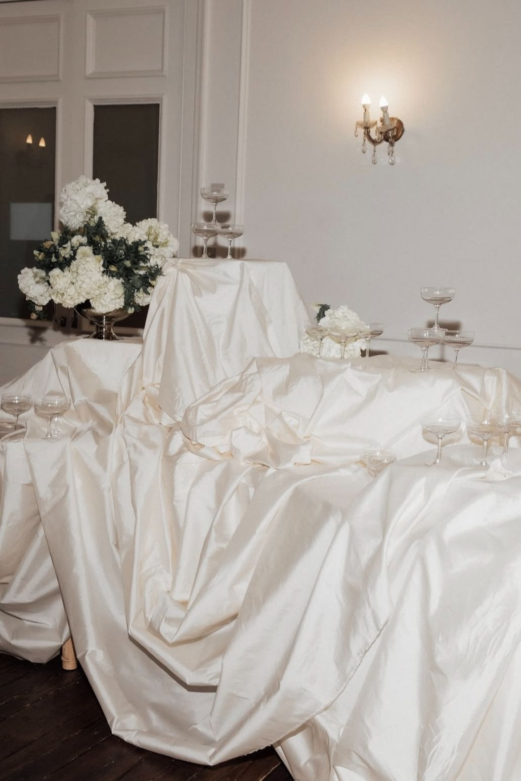 Textilskulpturer för bröllopsbord och barer är ett kreativt sätt att tillföra textur, rörelse och konstnärlig finess till eventdekor.