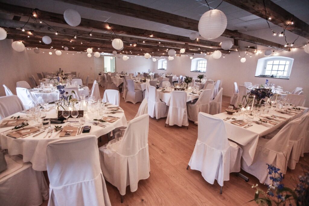 Den stora salen är lämplig för middagar upp till ca 90 gäster. Den ena salen är ombyggd med synliga bjälkar i taket och bra ljud för middagen. Det finns porslin till detta antal att hyra i samband med att man hyr lokalen. I den andra salen går det bra att dansa och ha musiker på den lilla scenen.