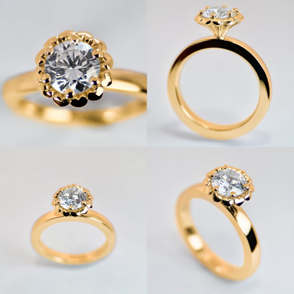 På min hemsida visar jag en massa olika exempel på vigselringar men allting går ju såklart att ändra till det man själv önskar, lite bredare, lite rundare, lite större eller mindre stenar, kanske en rosa istället för vit, naturlig diamant eller labodlad…? det är många små och stora önskningar som ska bli rätt. Många av mina kunder har en idè vad dom vill och ibland är det klart och då är det bara för mig att tillverka, ibland behöver man testa sin tanke och då är jag ett bollplank som kan ”öppna nya dörrar” ibland vill man bara testa för att sen återgå till det man tänkte först. Jag tycker det är viktigt att göra allt det, oavsett var ens beslut landar.