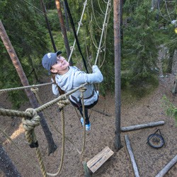 I vårt skogsområde i Erstavik, har vi 7 olika höghöjdsbanor och ziplines som ger en fysisk individuell utmaning och på marken har vi flera olika fasta och mobila program med fokus på att utmana gruppens samarbetsförmåga. Vi leder grupper i enlighet med äventyrspedagogik och du kommer snabbt märka att en aktivitet hos oss ger både inre och yttre utmaning och självkännedom! Här tävlar vi inte och ger inte heller ut några diplom – här är det er inre motivation som driver!