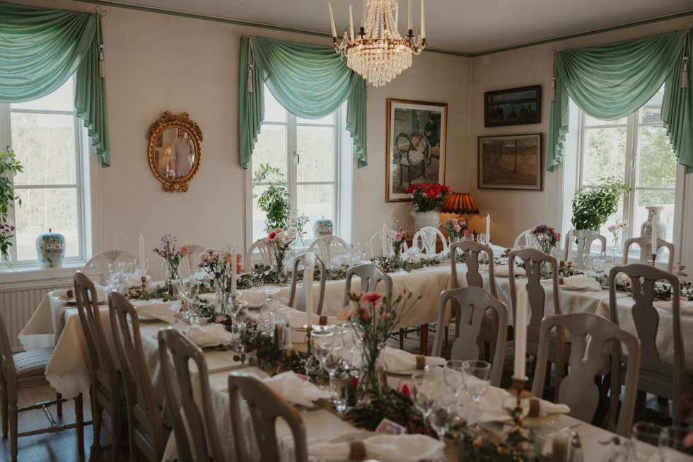 För bröllop som önskar en mer högtidlig inramning dukar vi i Bergsmanssalen, en vacker miljö med plats för ca 60 personer. Här trivs både mindre och medelstora sällskap som vill ha en mer avskild och stämningsfull bröllopsmiddag.