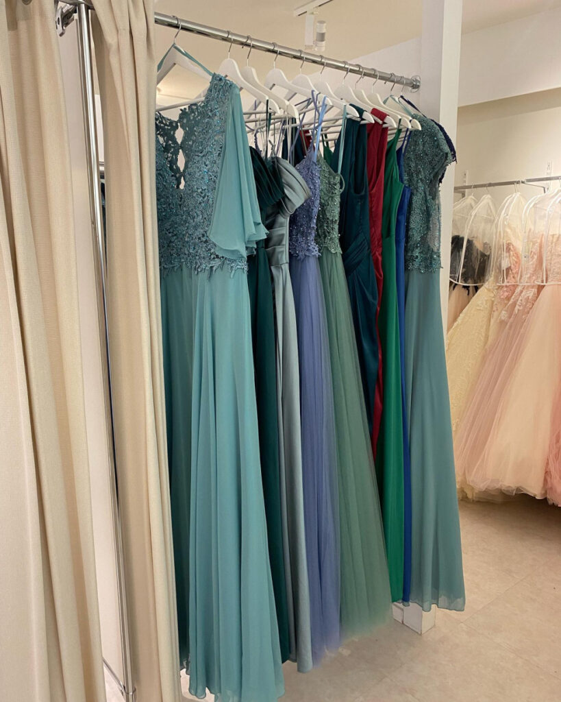 I företagets begynnelse skapade Annelie unika klänningar helt utifrån kundernas önskemål. Idag har vi valt att fokusera på handplockad, färdig design från välkända märken. Vi erbjuder ett brett sortiment av: