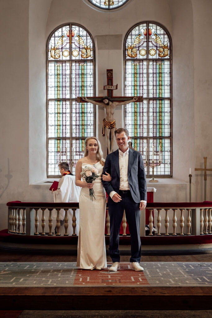 Vi följer med er genom större delen av bröllopsdagen. Under åtta sammanhängande timmar fångar vi allt från dagens första förberedelserna till festligheterna. Vi dokumenterar förberedelser, first look, porträttsession, vigsel, gratulationer, mingel och inledningen av festen.