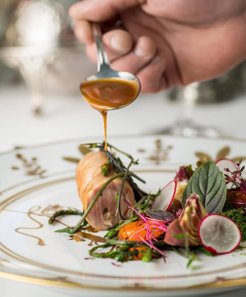 Natasa har en bakgrund inom den tunga franska matlagningen med rötter från balkan, vilket speglar maten och råvarorna hos oss. När Natasa startade företaget 2010 var tanken var att ge det gröna maten större utrymme och hon har varit en betydande drivkraft för småproducenter i uppland som ville få utrymme på marknaden. Närheten och relationen till leverantören är viktigt för att förstå råvaran. Natasas favoritråvara är bläckfisk. Hon verkligen älskar bläckfisk.