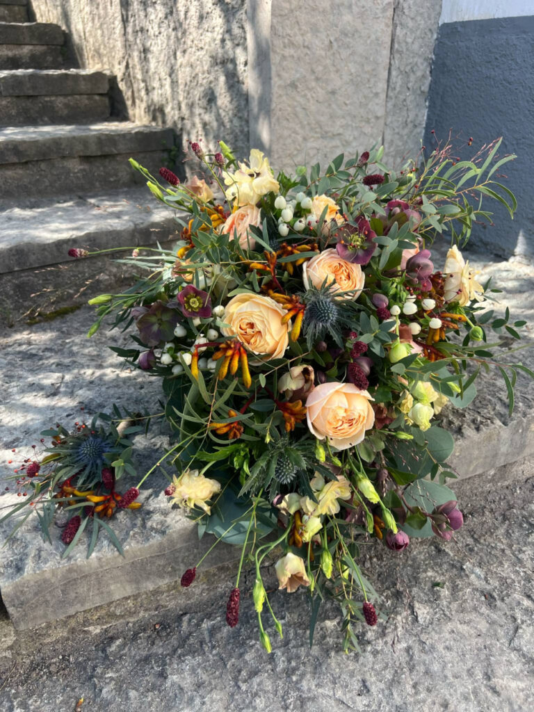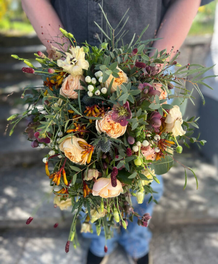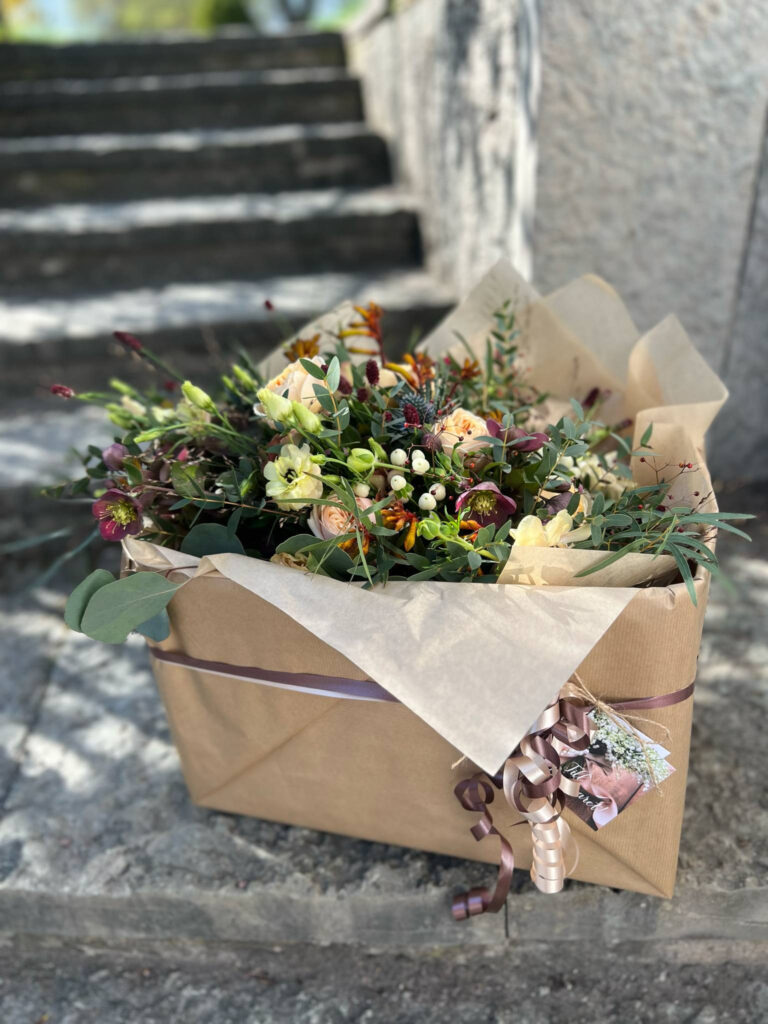 Vi älskar blommor som är i säsong, gärna lokalt odlade när det finns. Vi har även ett stort urval av torkade blommor som gör sig fint i både buketter, hårsmycken, corsage m.m.