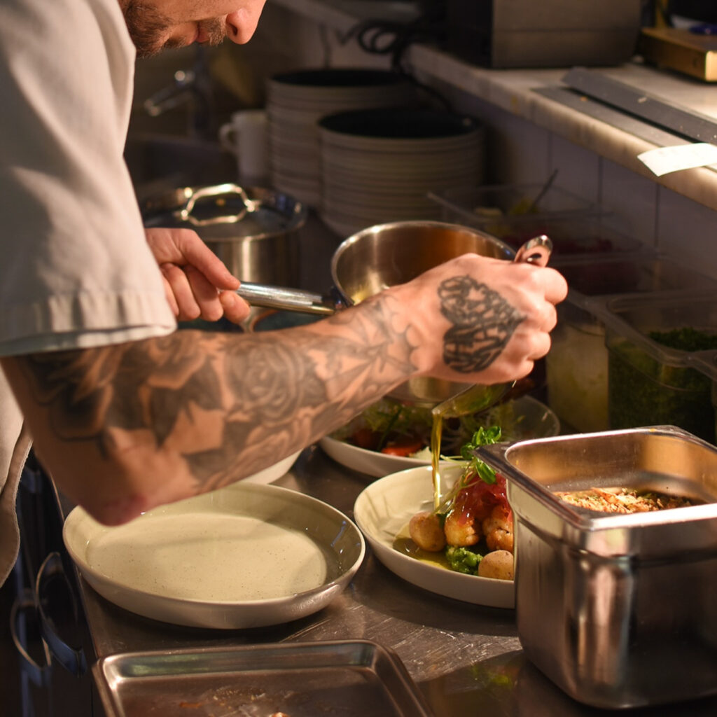 Vi komponerar en meny efter era önskemål, därav ingen färdig meny att välja emellan. Som grund erbjuder vi ett glas mousserande till fördrink ihop med två stycken canapéer, förrätt och varmrätt med vinpaket från 1350Kr per kuvert. (Bröllopstårta ingår ej!)