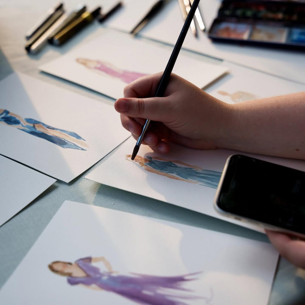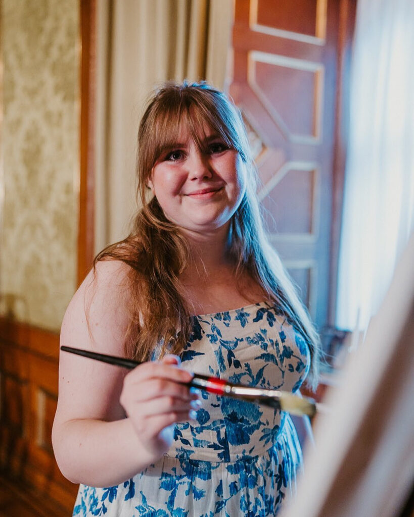 Bröllopsmåleri, eller internationellt känt som “live wedding painting” är en unik och underhållande service som erbjuder lyxig underhållning för bröllopets gäster men också en tavla till brudparet som slutresultatet. Processen startar med ett samtal tillsammans med brudparet där vi diskuterar vad för vision de har inför sin bröllopsdag och målning. Processen är individuell och en del brudpar har en väldigt tydlig bild om hur målningen ska se ut, andra ger mig större konstnärlig frihet. Mitt mål är att fånga bröllopets själ, för att göra detta är det viktigt för mig att få ta del av brudparets kärlekshistoria, men också deras drömmar och framtid.