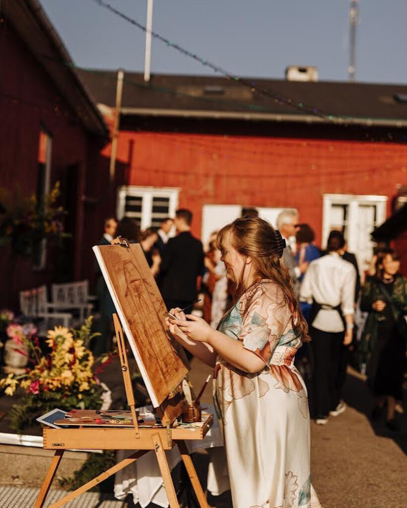 Bröllopsmåleri passar paret som söker en extra touch av magi på sin redan speciella dag! Att se en oljemålning komma till liv är en unik upplevelse och härlig underhållning för både gäster och brudpar. Låt oss inte heller glömma att slutresultatet blir ett verk för brudparet att uppskatta för alltid. Måleri är ett fantastiskt kärleksspråk och har den unika förmågan att föreviga ögonblicket!