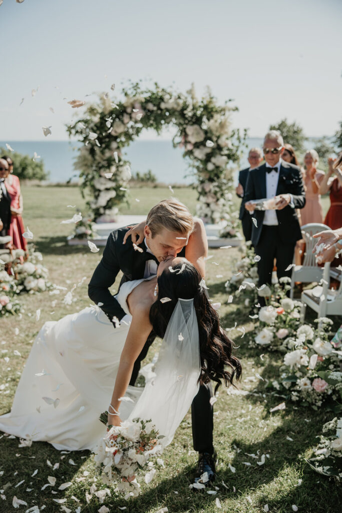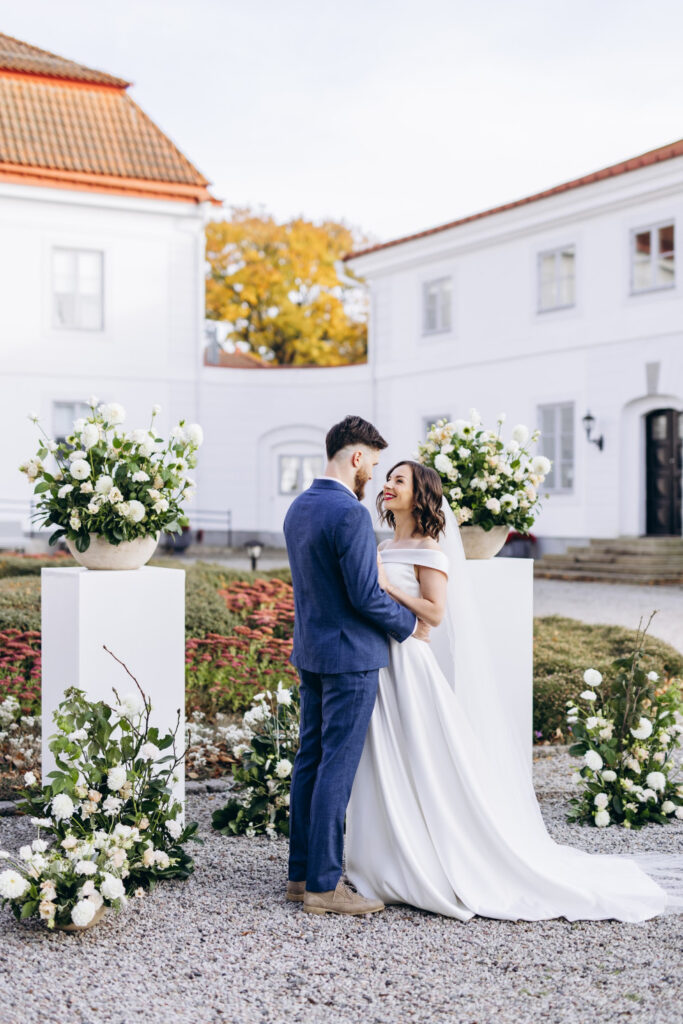 Oavsett om ni planerar en intim ceremoni i trädgården eller ett storslaget slottsbröllop, skapar vi arrangemang som binder samman hela dagen med harmoni och elegans.