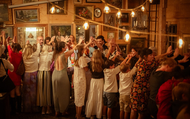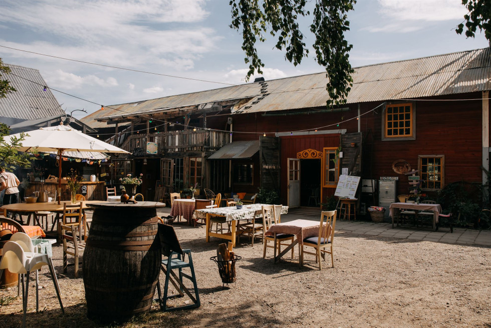 Vid fint väder hålls de stora ladugårdsdörrarna öppna mot gården på framsidan, och verandan på baksidan med utsikt över Rosenhills grönskande trädgård och åkrar. I direkt anslutning till ladan finns baren, gårdsplanen, utrymme för DJ-bås och en liten scen för band. Om det är dåligt väder utnyttjar vi verandan istället för gårdsplanen. Vi kan tända en brasa i spisen om så önskas.