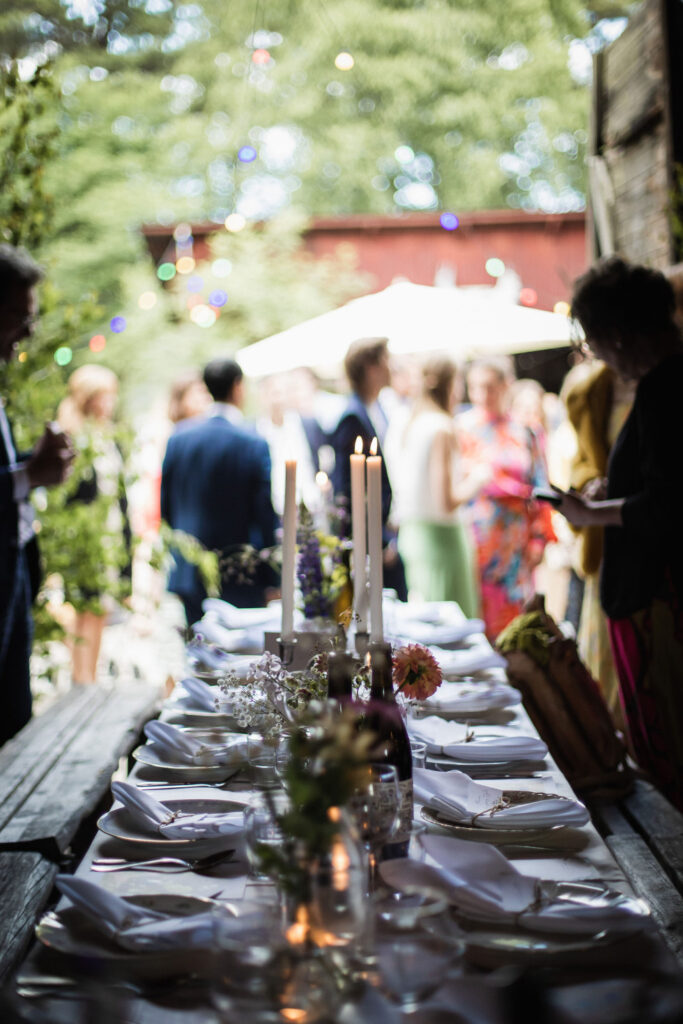 21:30 – 22:30 Bröllopstårta/efterrätt, kaffe och te serveras på gården eller verandan. Dansgolv förbereds (borden flyttas).