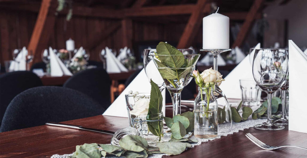 Till middag kan ni välja på en fin trerätters middag eller en härlig buffé. Läs mer om våra paket nedan och kontakta oss för mer information om allt våra bröllopspaket innehåller eller för mer information om våra buffépaket, från 990:-/person. Priserna gäller för 2025.