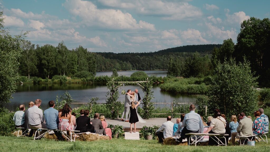 På Sju Sjöar blir ert bröllop den fantastiska upplevelse ni drömmer om. Gården är perfekt för ett riktigt underbart, romantiskt bröllop! Vigseln kan ske i skogen, vid sjökanten eller i en närbelägen kyrka. Om ni önskar serverar vi välkomstdryck och tilltugg efter vigseln.