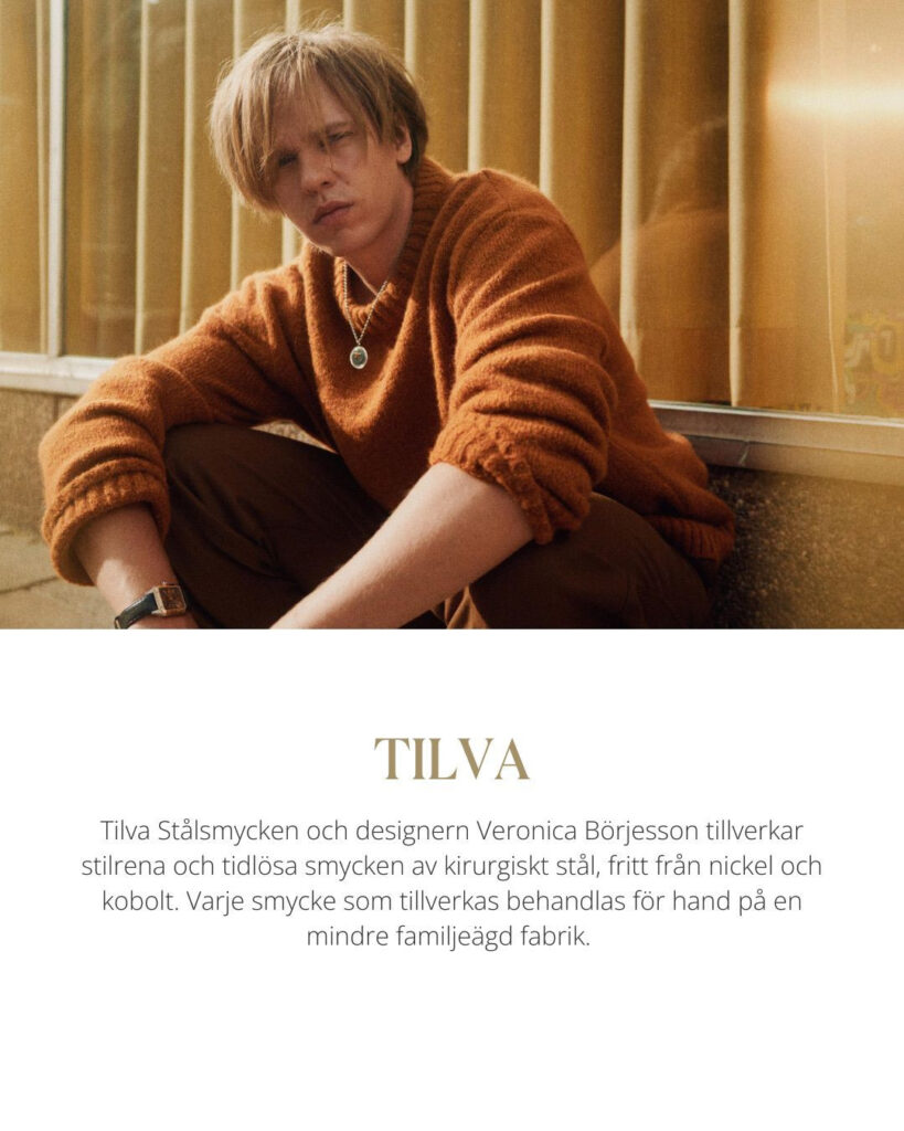 Tilva Stålsmycken tillverkar stilrena & tidslösa smycken. Materialet är av kirurgiskt stål, fritt från nickel och kobolt. Stenarna är av Cubic Zirconia som är den konststen som kan slipas likt en diamant, så de blir väldigt glittrande. Märket är Tilva och designern bakom Tilva är Veronica Börjesson som har ett brinnande intresse för smycken och design. Vi har snabb leverans och säkra betalningar genom Klarna, swish och Paypal. Anmäl dej till nyhetsbrevet för att följa erbjudande och nyheter.