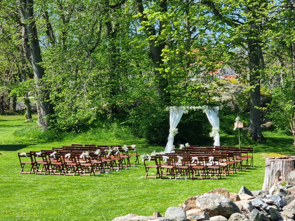 Många brudpar har redan förverkligat sina drömmar här som festival bröllop med food-trucks till klassiska ceremonier i vår natursköna miljö. De stora gräsytorna ger plats för lek och glädje där ni kan ha en yoga- eller avkopplingsstund för de vuxna och vissa brudpar har till och med hyrt in en hopp borg och ordnat fiskdamm för barnen.