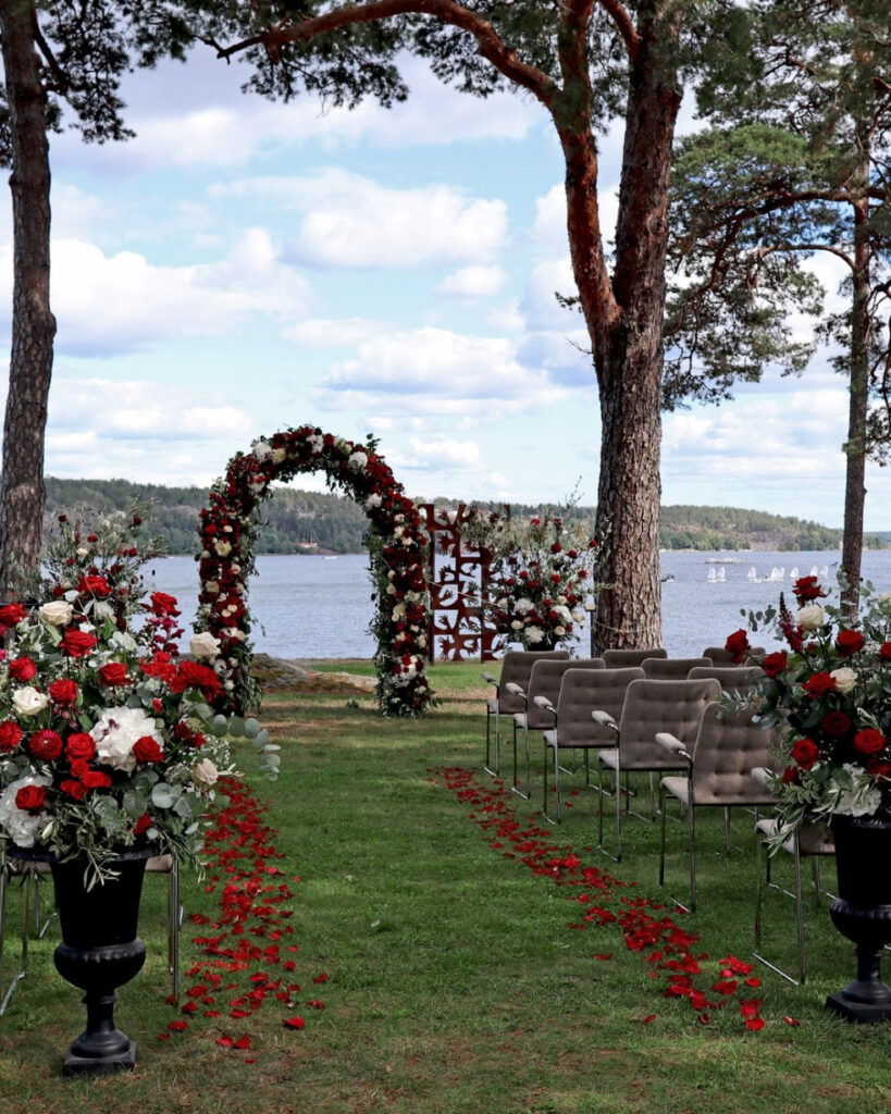 Vid vackra sommardagar är en utomhusvigsel magisk med havet som bakgrund och bröllopsfesten tar plats i vår största lokal Isaac. Här är det högt i tak och en strålande utsikt över Baggensfjärden. Isaac passar utmärk för större sällskap som vill ha gott om utrymme för dans och mingel och den stora scenen är perfekt för tal och underhållning. Här serveras även bröllopsmiddagen av vår proffsiga servispersonal. Med vårt bröllopspaket får ni en komplett upplevelse med god mat & dryck från vårt kök och bageri och en sprakande avslutning med dans och glädje tillsammans med familj och vänner. Boka rum med 20 % rabatt För alla bröllopsgäster erbjuder vi ett unikt erbjudande på övernattning i samband med bröllopet. Vid bekräftad bokning får ni en personlig rabattkod med 20% rabatt på våra hotellrum. Frukost ingår. För personlig service ring 08-7487760 eller maila festligheter@vargard.se