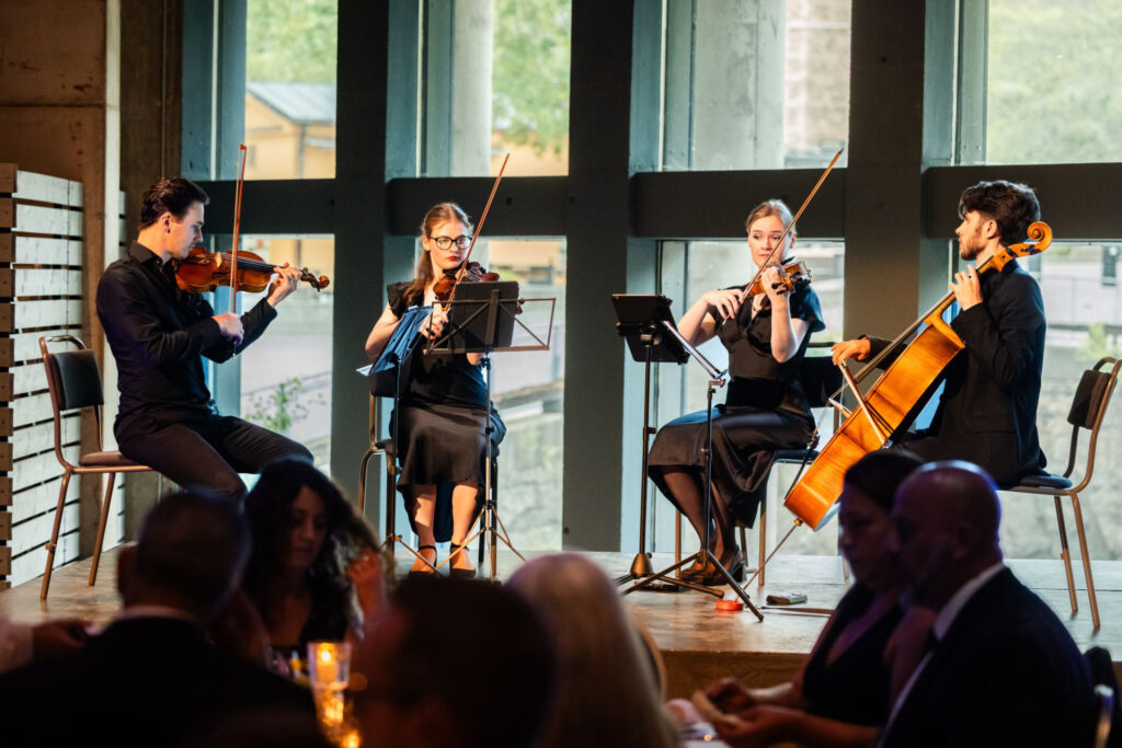Professionell stråkkvartett för bröllop och event Förgyll din tillställning med tidlöst vacker stråkmusik. Om det så gäller eleganta klassiska stycken, romantisk filmmusik, förtrollande poparrangemang, låtar i folkton, eller jazz, anpassar vi vår repertoar för att skapa den perfekta stämningen på din ceremoni, mottagning, eller ditt mingel. Som alumner från Kungl. Musikhögskolan arbetar vi på högsta…