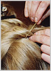 Om inte plånboken tillåter alltför stora utsvävningar så kan du lätt fixa brudfrisyren med assistans av en god vän. Vår modell Frida är ett bevis på att det faktiskt går att skapa en exklusiv look för ca 150 kr (exkl. hårprydnad).