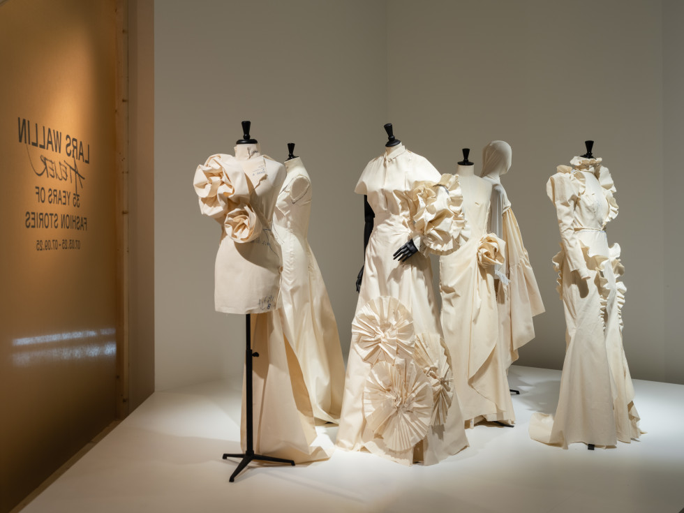 Utställningen Lars Wallin Atelier – 35 Years of Fashion Stories bjuder in besökaren till Wallins universum. Här får du komma nära modedesignerns vardag i ateljén genom personliga berättelser om källor till inspiration, mötet med kunder och samarbetet med skickliga skräddare som med år av erfarenhet skapar Lars Wallins drömlika kreationer.