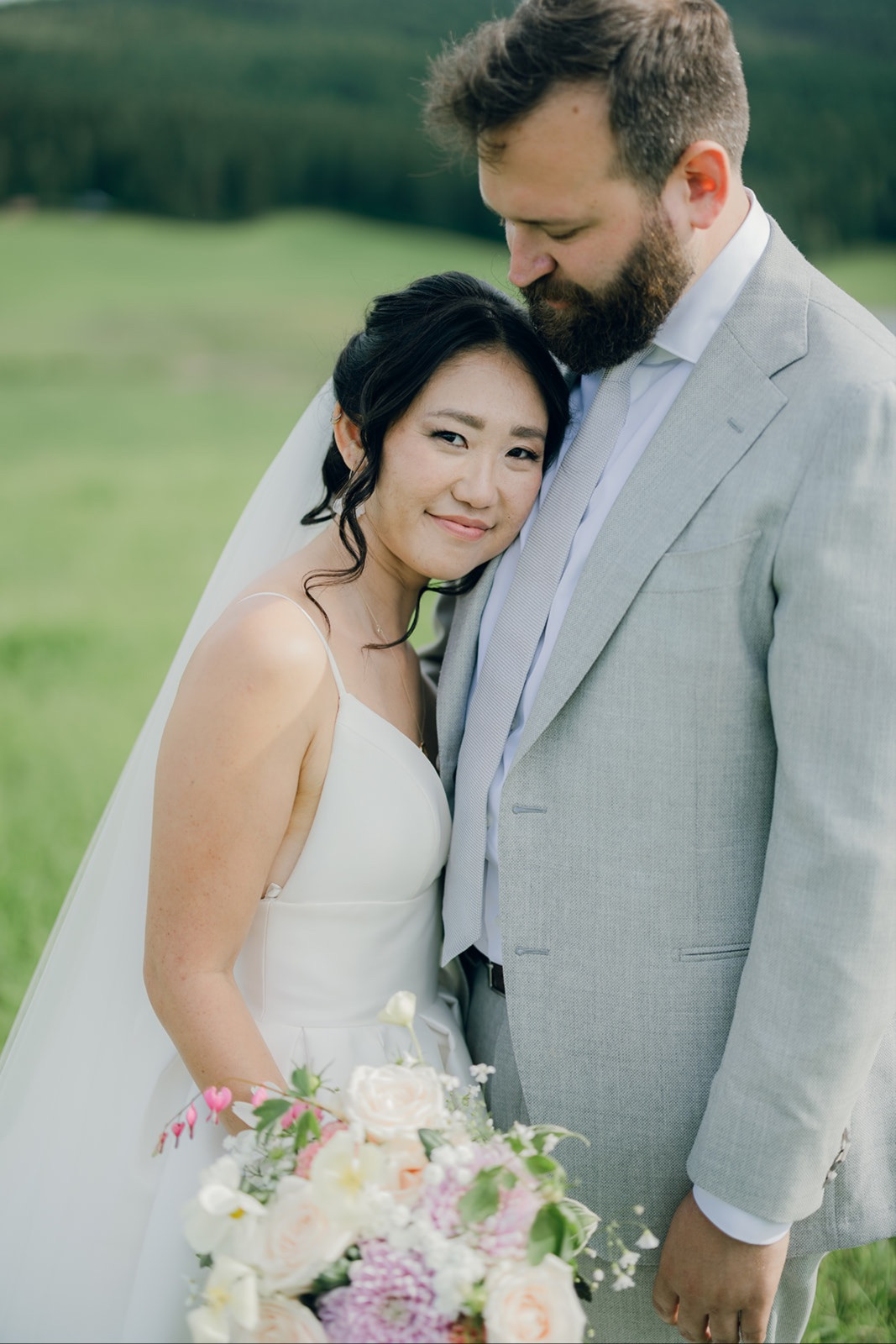bild på ett brudpar i naturen