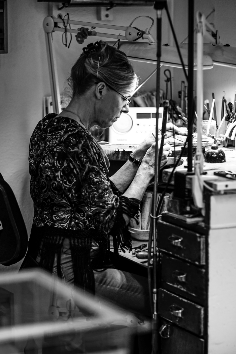 – Jag vill ha så mycket information som möjligt för att kunna anpassa designen efter dig som person. Har du långa fingra, korta? Alla är olika, och allt spelar roll. Så fort du kommer in i min ateljé börjar jag söka efter det bästa formspråk till just dig, förklarar hon.